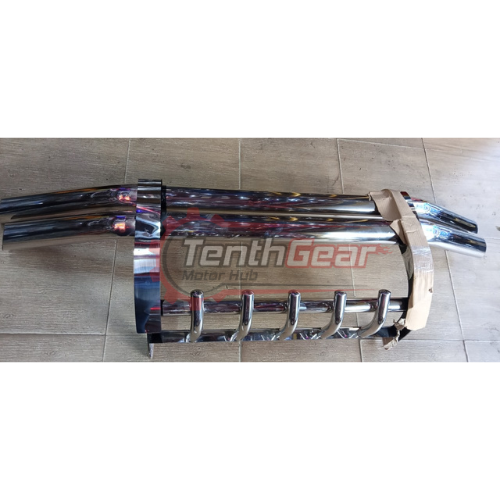 The Universal Grille Guard – Double Bar is a sleek and reliable front-end protector built for SUVs and pickup trucks. It shields the bumper and grille from scratches, dents, and minor collisions, making it ideal for both off-road adventures and city driving. With its shiny chrome finish and tough construction, this guard improves your vehicle’s appearance while ensuring lasting durability. Designed for the Kenyan market, it delivers the perfect mix of protection, performance, and visual appeal.